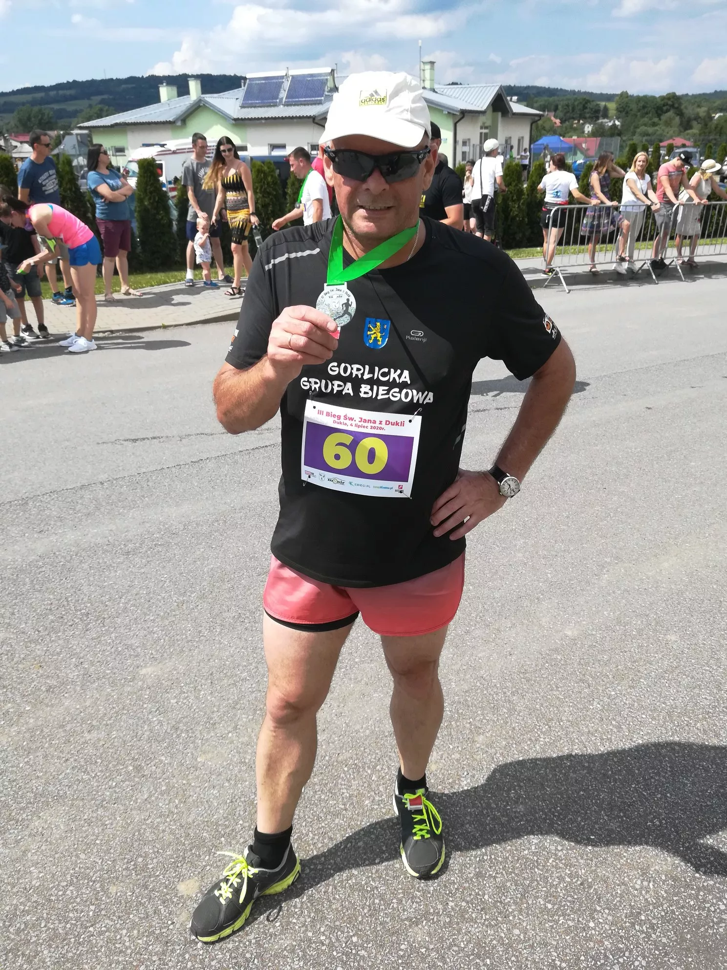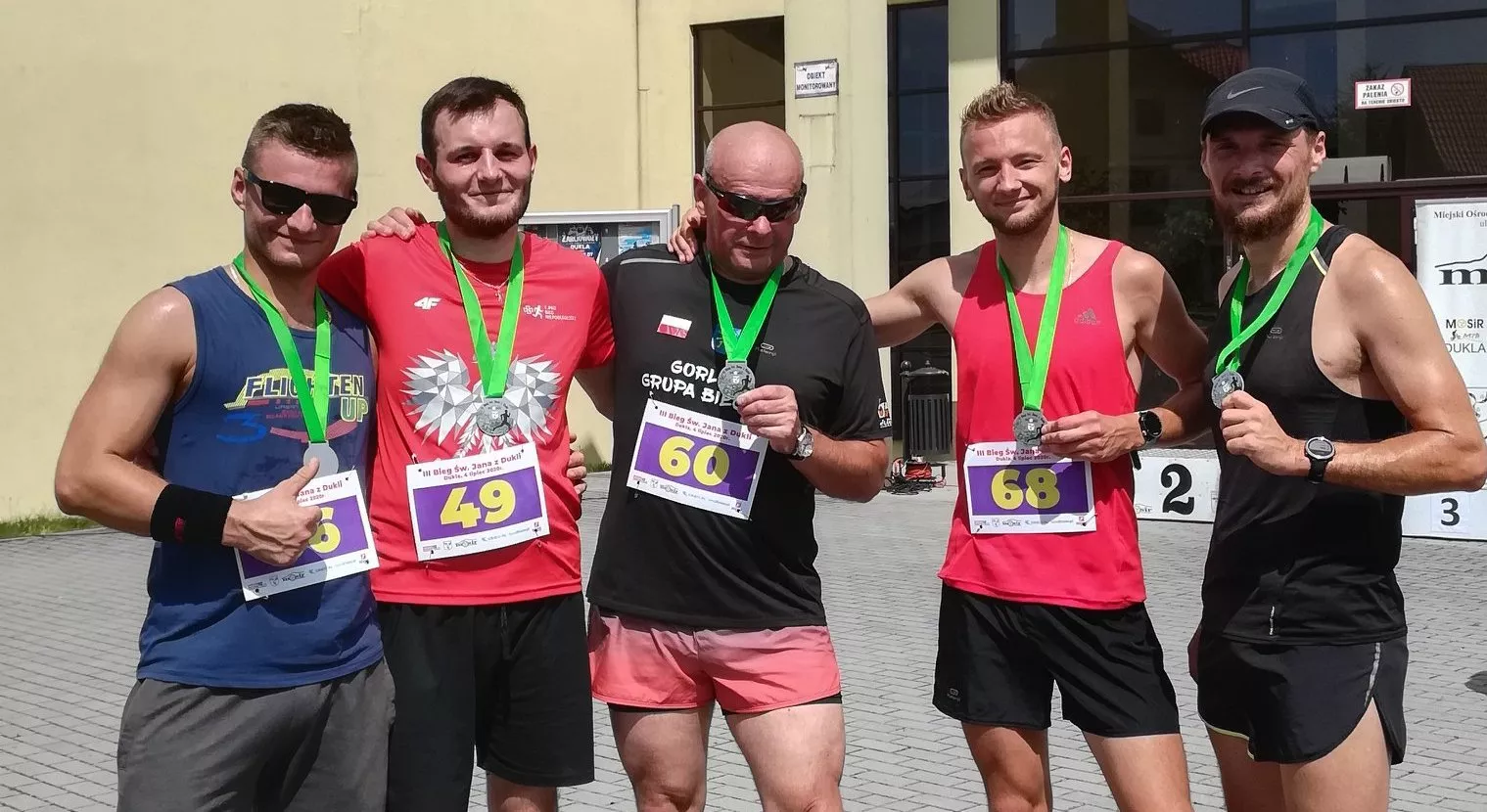 Na mecie czekały na nas wspaniałe medale i miła niespodzianka od Grupy Biegowej Wilki Jodłowa, skąd pochodzę, a od której otrzymałem pamiątkową koszulkę. Grupa ta po raz pierwszy zadebiutowała w nowych koszulkach startowych, które prezentują się znakomicie.