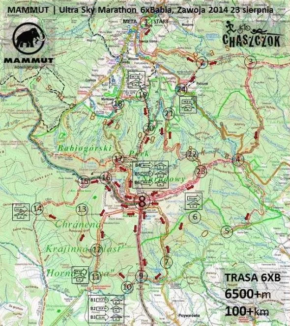 Limit czasu jest związany z długością dnia. Nie chcemy, aby zawodnicy na najtrudniejszych odcinakach biegali w nocy. Proszę zwrócić uwagę, że każde wydłużenie limitu powoduje większą ilość mniej doświadczonych, a więc często dużo bardziej zmęczonych biegaczy na trudnych odcinkach trasy. To będzie 6 podbiegów o prawie 1000m przewyższeniu i 6 takich samych, trudnych technicznie zbiegów. Przebiec 100km po górach można w kilku lub kilkunastu biegach w Polsce, ale chyba nigdzie nie będzie to tak trudne. Nie chcemy sprawiać wrażenia, że może to zrobić prawie każdy. Bieg 6xBabia to bieg, który mogą ukończyć tylko doświadczeni biegacze. Przewidywany czas ukończenia biegu przez najlepszych zawodników to poniżej 12h.