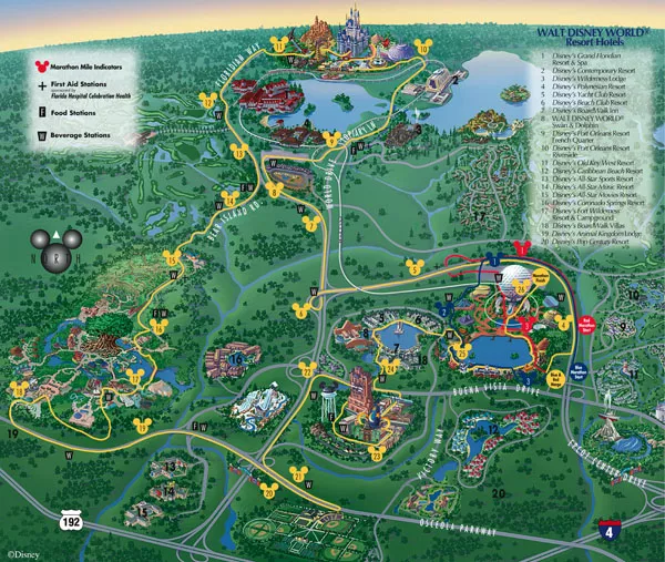 Trasa w całości prowadzi alejkami parku rozrywki. Obiekt podzielony jest na cztery odrębne miasteczka (Disney Kingdom Park, Disney’s Hollywood Studios, Disney Animal Kingdom Theme Park i Epcot). Start i meta mieszczą się w Epcot, ale trasa wiedzie przez cały park. Bieg urozmaicają postaci z bajek.