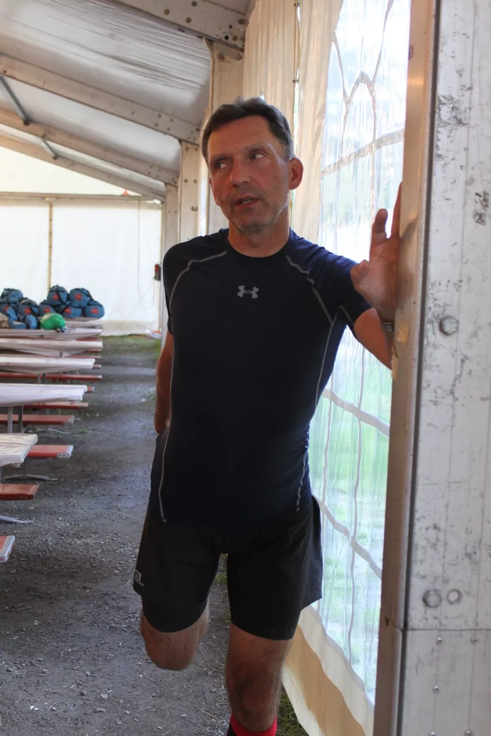 Biegłem w dół, następnie już na terenie Champery pod górę sumarycznie 4-5 km. Do bazy docieram 12:35 (czwartek). Tam spotkałem swoich i rozpoczął się stały rytuał. Odebranie torby z przepaku, jedzenie, picie, prysznic, jedzenie, picie, w międzyczasie opatrzenie nóg, posmarowanie otarć, rozmowy motywacyjne itd. Od dziewczyn dowiaduję się, że jednak są dobrzy ludzie, którzy oglądając moje postępu na stronie pchają przysłowiową kropkę do przodu. W tamtym momencie przepełnia mnie wdzięczność, że nie jestem sam.