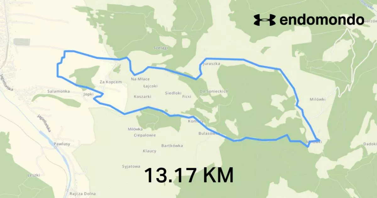Moja trasa zamknęła się w 13,17 km. Runda od stacji PKP przez Halę Boraczą do stacji to 14,10 km.