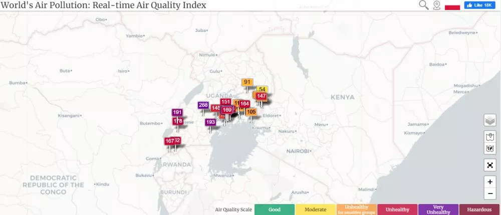 Jak się okazuje problem smogu dotyka też Afrykę. W piątek wieczorem mapa zanieczyszczonego powietrza pokazywała, że okolice Jeziora Wiktorii są jednym z najbardziej zatrutych rejonów na tym kontynencie.