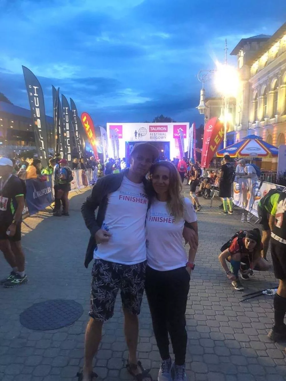 Zbieg z Runka w kierunku Krynicy wspominam wyśmienicie. Żona uciekła do przodu, ale nie martwiłem się, wiedziałem, że jest lepsza ode mnie i będzie szybciej na mecie. Ja zagadywałem ludzi i rozkręcałem tempo, by w pewnym momencie w okolicach 93. kilometra biec w okolicach 4:30. Chemia organizmu i gigantyczna chęć ukończenia biegu napędzały mnie do mety. Wyprzedzałem i byłem wyprzedzany, ale było naprawdę fajnie. Kiedy doleciałem do Krynicy i biegłem wzdłuż ulic, kierowany przez obsługę czułem niesamowitą radość i wewnętrzną ekscytację, że kończę ten bieg w zdrowiu i z niezapomnianymi wspomnieniami. Na deptaku w Krynicy krzyczałem i dziękowałem kibicom, że przyszli mnie wspierać, miałem łzy w oczach i czułem się bardzo wyjątkowo. Skończyłem zawody z planem minimum, ale i tak bardzo, bardzo dobrze wspominam ten bieg.
