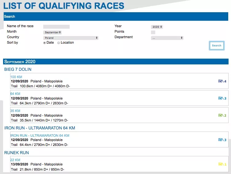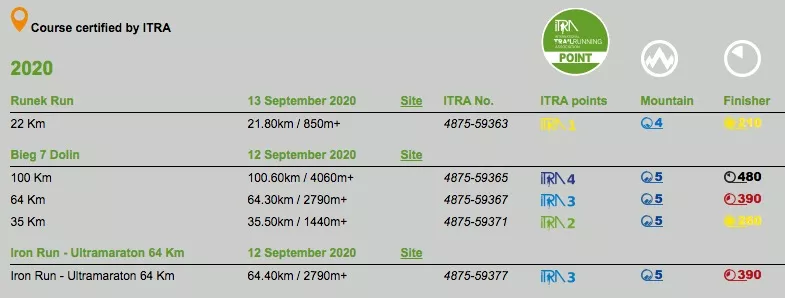 Weryfikacja i punktacja ITRA objęła dystanse Biegu 7 Dolin (100, 64 oraz 35 km), Runek Run 22 km a także - po raz drugi - festiwalową etapówkę IRON RUN.