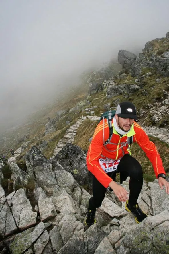 Po 40 minutach nareszcie upragniony szczyt. Teraz tylko dość nieprzyjemny, z powodu luźnych kamieni, zbieg do Szczawnika. Tak zaczyna się ostatni etap tego bardzo wymagającego biegu.