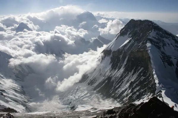 Taki widok rozciągał się przed każdym, kto na wysokości 7700m n.p.m. wyruszał rano do następnego obozu na wysokości 8300m n.p.m. Na tej wysokości każdy z uczestników wyprawy nocował już w namiocie z Szerpą, który przygotowywał posiłki i potem na szczyt niósł dwie butle tlenu, które były na wymianę.