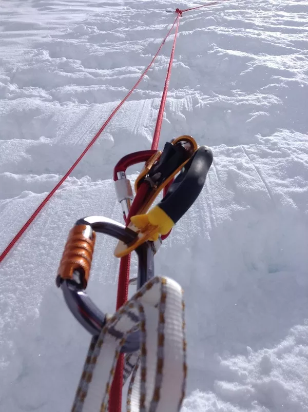 Poniżej zdjęcie podstawowego urządzenia, które pomaga we wspinaczce (w żargonie małpa). Przesuwasz do góry na linie poręczowej i zaraz po przesunięciu następuje blokada na ruch w dół. Dzięki temu, bardzo często ręce pracują tak jak nogi w marszu pod górę.