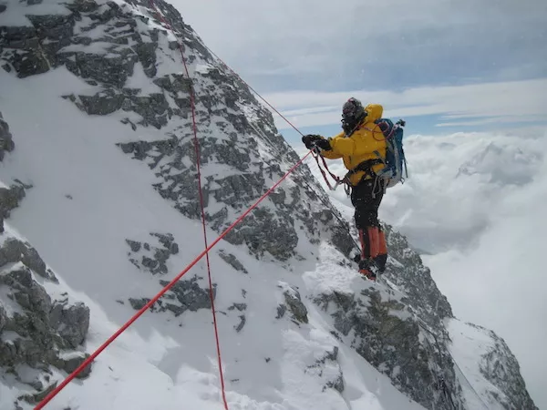 Momentów, kiedy były takie ekspozycje (czyli miejsca, gdzie po jednej i drugiej stronie były takie strome ściany), było wiele. Zwłaszcza, gdy wracaliśmy – kiedy był już dzień i wtedy, gdy każdy z nas wiedział, że zdobył najwyższą górę świata. Były to trudne do pokonania odcinki, bo gdyby coś się człowiekowi przytrafiło na grani Mount Everestu, to praktycznie nie miałby szans na żadną pomoc.