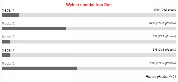 Zapraszamy do głosowanie na medal Iron Run. Na konkurs napłynęło ponad 100 projektów z których wybraliśmy 5 do finałowej rozgrywki. Na zwycięzcę czeka nagroda w wysokości 5000 złotych, dla pozostałych finalistów mamy wyróżnienia w postaci nagród rzeczowych. Głosowanie potrwa do poniedziałku 3 czerwca do godziny 12.00 w południe. Wyniki konkursu ogłosimy 3 czerwca o godzinie 15.00.