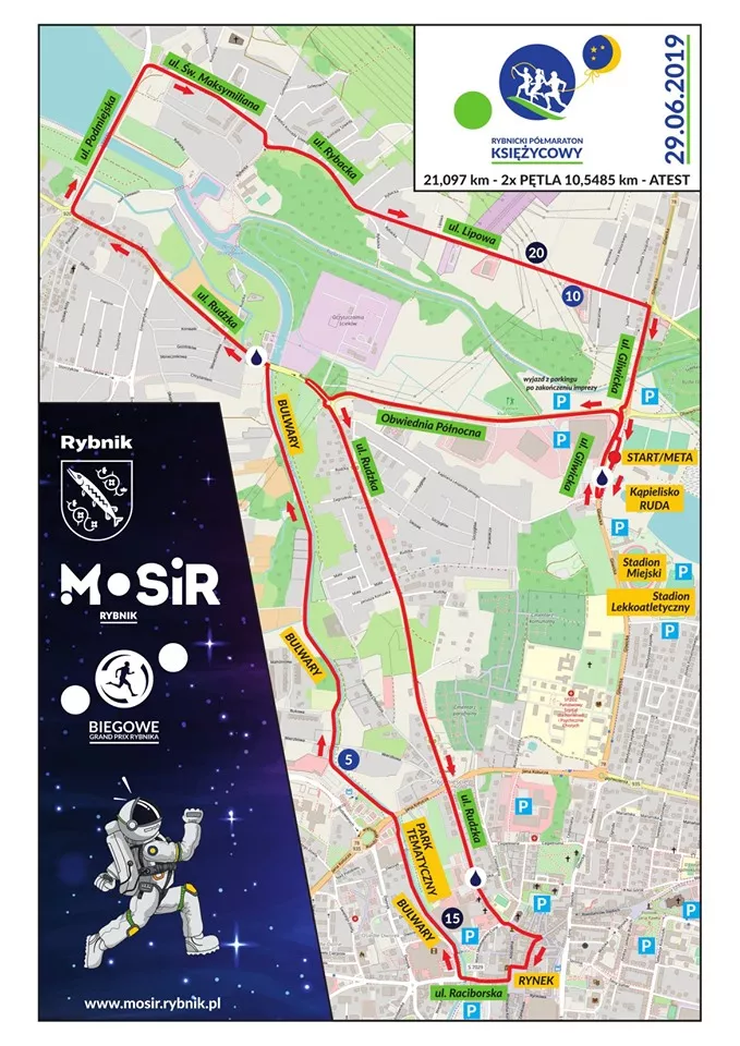 Do tej pory trasa Rybnickiego Półmaratonu Księżycowego składała się z trzech pętli po 7 km. Nowa będzie miała dwie po 10,548 km. – Mamy dziesiąty półmaraton, więc chcieliśmy zrobić 2 razy 10 km, żeby tych dziesiątek było jak najwięcej. Oczywiście trasa jest atestowana – zapewnia Pietras.