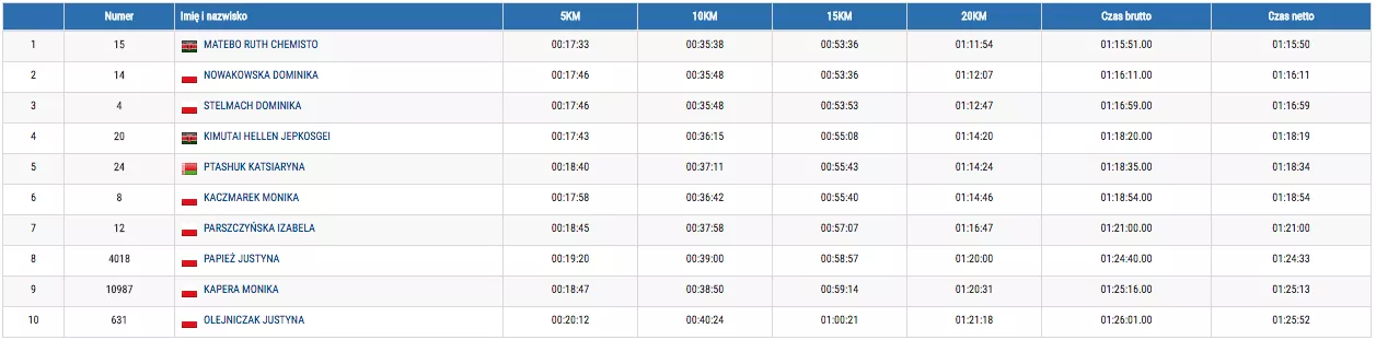 Do ugryzienia były wysokie nagrody finansowe (8 tys. zł dla zwycięzców) i rekordy imprezy: 1:02:00 Solomona Kiptoo z 2012 r. i 1:09:53 Karoliny Nadolskiej z 2017 r. (ew. premia 10 tys. zł). Ku motywacji uczestników, na mecie czekał... pomarańczowy dywan.