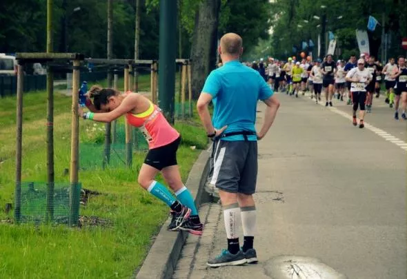 Od 23. kilometra złapały mnie skurcze w nogach, zatrzymywałam się co kawałek, żeby się rozciągnąć, ale to nic nie dawało. Kolejny plus dla wolontariuszu, bo jak tylko się zatrzymywałam, od razu podbiegali i pytali, czy wszystko jest „okej”.