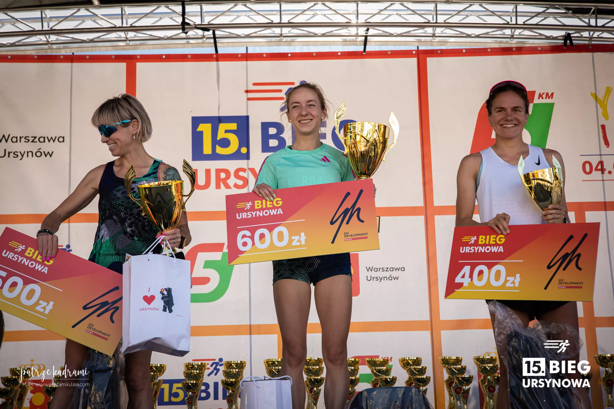 Biegaczka spod Garwolina zwyciężyła w czasie 16:57, Stelmach była 6 sekund za nią, a na najniższym stopniu podium stanęła Aleksandra Jędrzejska. W zorganizowanej po raz pierwszy klasyfikacji drużynowej 15. Biegu Ursynowa najlepsza okazała się ekipa Duklanowski Team z Kamilem Jastrzębskim na czele. Najliczniejszą, blisko 50-osobową ekipę, wystawił drugi w klasyfikacji Adidas Runners Warsaw, którego najmocniejszym punktem była Dominika Stelmach.