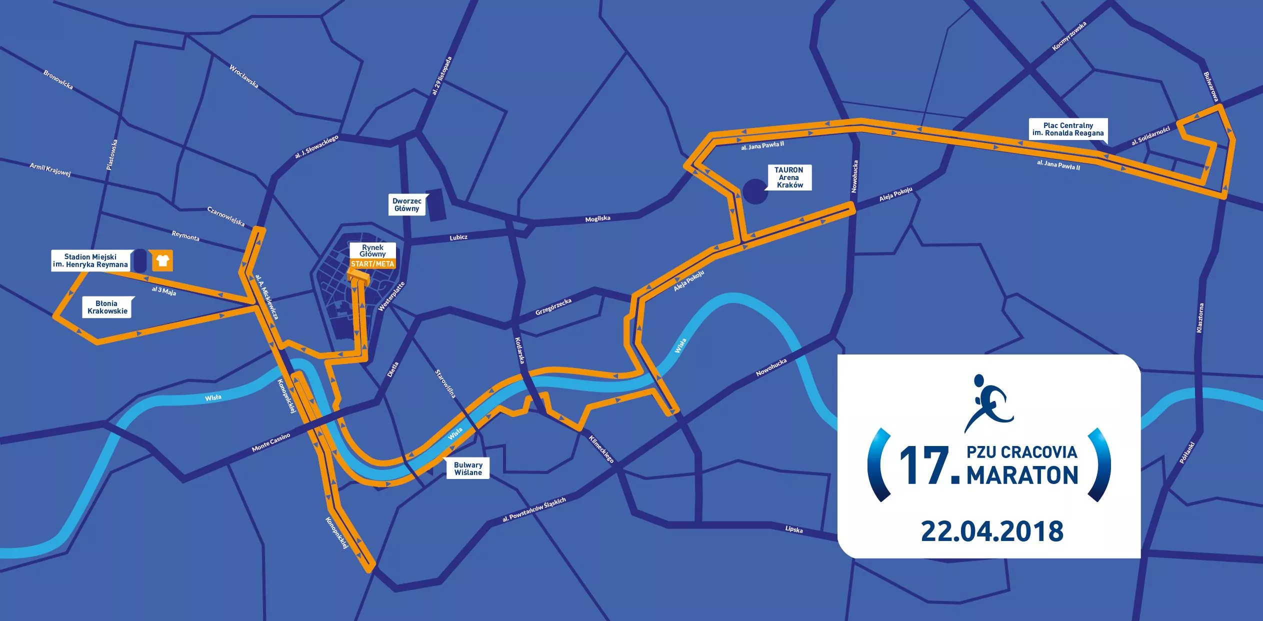 Już po raz piąty z rzędu, start i meta maratonu znajdować będą w sercu Krakowa, czyli na Rynku Głównym. Trasa prowadzić będzie obok wielu najpiękniejszych miejsc w Grodzie Kraka, wszystko zgodnie z hasłem zawodów „z historią w tle”.