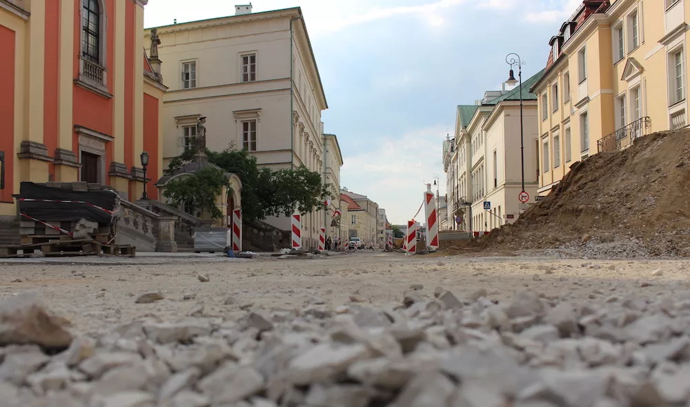 Co roku tysiące uczestników podąża placem Krasińskich, w pobliżu Pomnika Powstania Warszawskiego i dalej ul. Miodową. Jest to pierwsze kilkaset metrów, może kilometr trasy. Niby tak nie wiele, a jednak. Wszystko wskazuje na to, że przebudowa wspomnianych ulic wpłynie na przebieg trasy tegorocznej edycji powstańczego biegu. Prace zaczęły się we wrześniu 2017 roku, a inwestycja warta jest ok. 21 mln złotych (poniżej zdjęcie sprzed miesiąca).