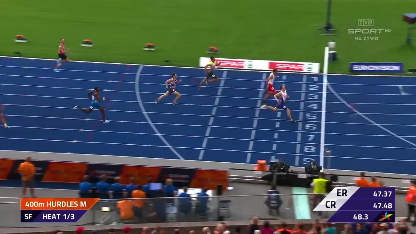 Kapitalnie w półfinałach spisał się Patryk Dobek. Polak, biegnąć w pierwszej serii z mistrzem świata Karstenem Warholmem, ustrzegł się błędów na płotkach i z kolejnymi przeszkodami tylko przyspieszał. Z czwartego, przez trzecie po drugie miejsce, w pięknym stylu wbiegł do finału konkurencji. Po raz pierwszy w tym sezonie złamał granicę 49 sekund (48.75). Z Warholmem przegrał tylko o 0,18 sek.
