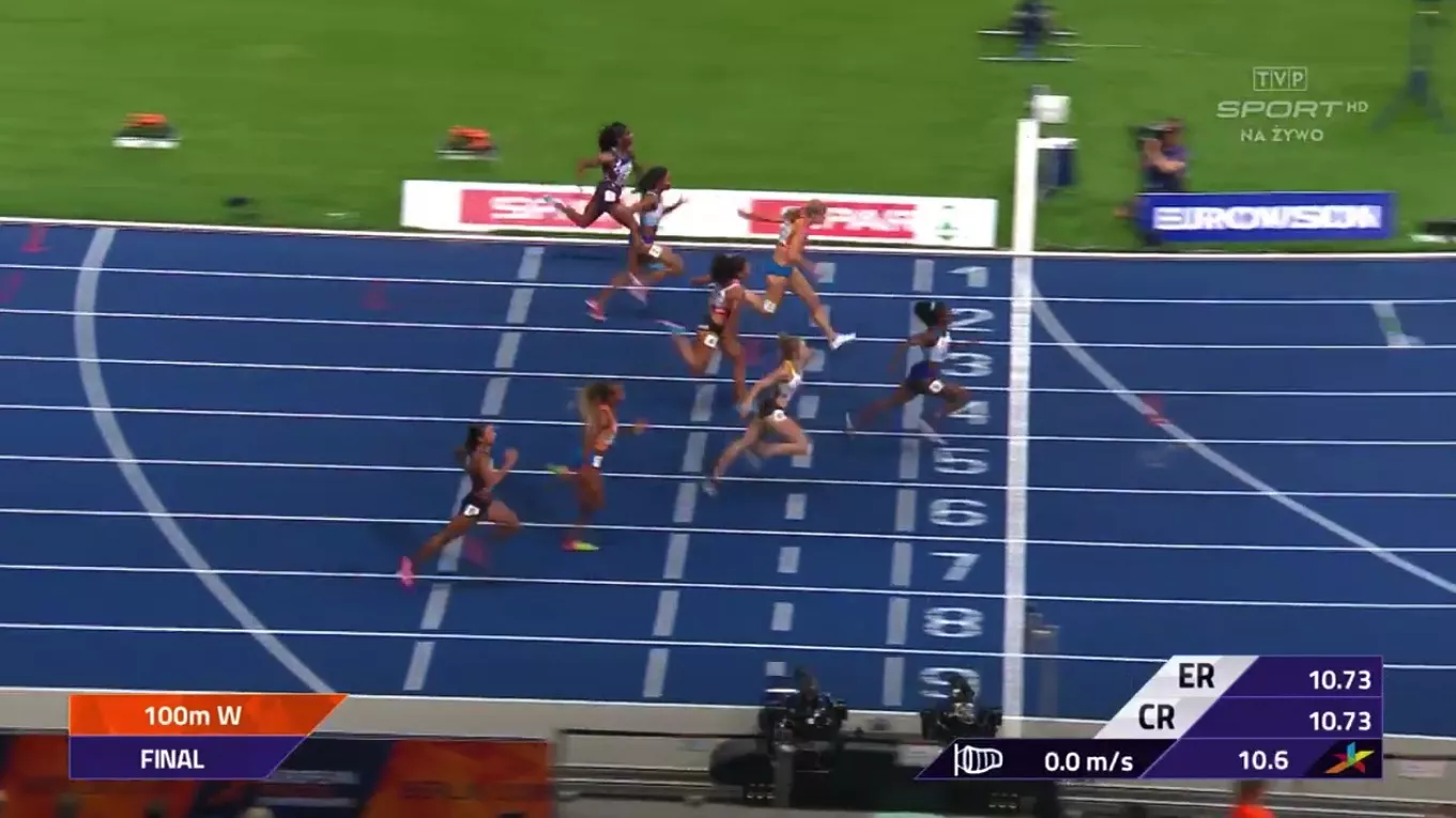 Finałowa rozgrywka zapowiadała się emocjonująco i taka też była. Dina Asher Smith co prawda zdeklasowała rywalki, wygrywając ze sporą przewagą nad stawką (10.85), ale srebro sensacyjnie przypadło Niemce Ginie Luckenkemper (10.98). Tylko srebro dla Daffne Schipers (10.99).