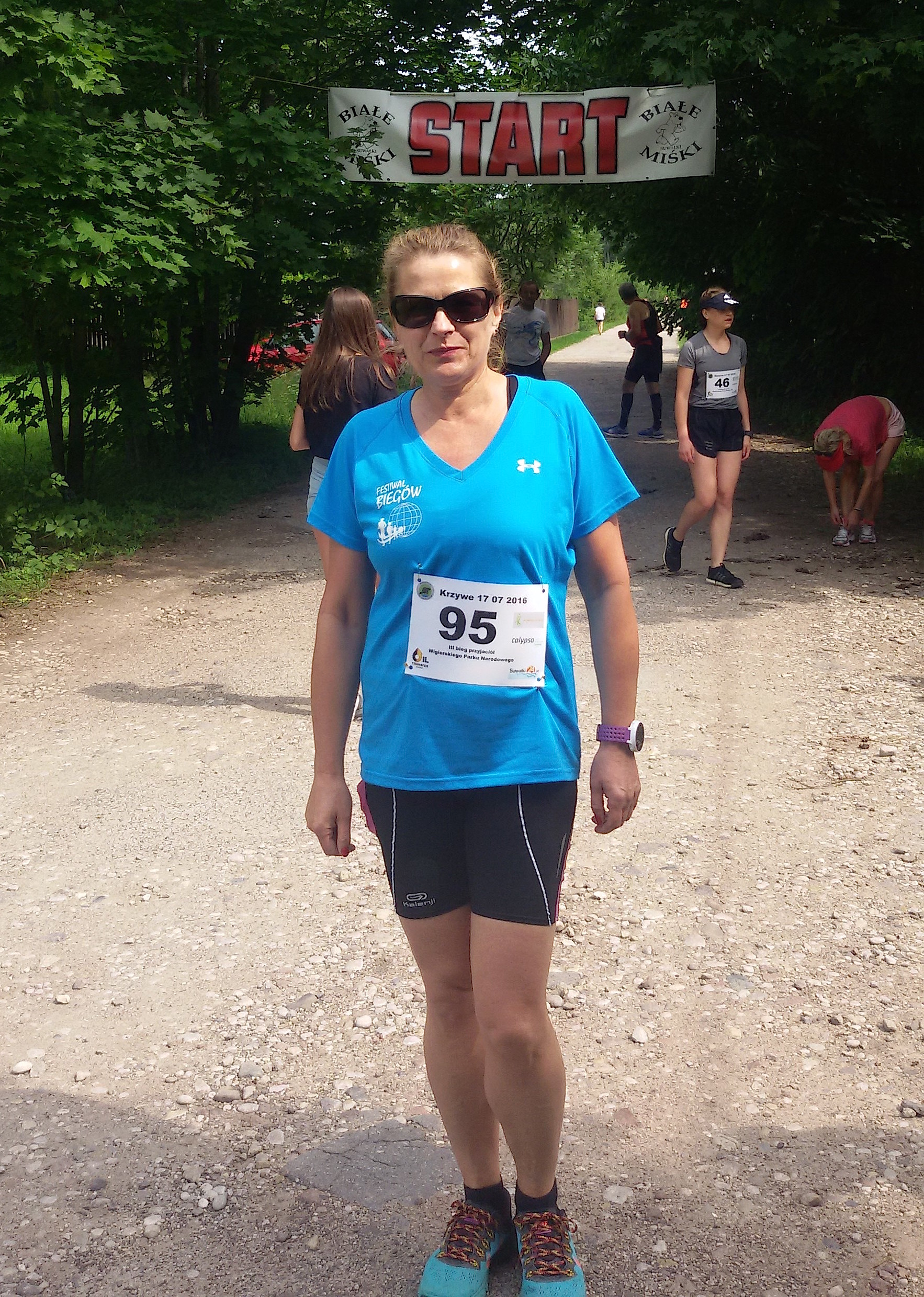 O godzinie 11 w pięknej, słonecznej pogodzie wyruszyliśmy na trasę. Trasa biegu bardzo dobrze oznaczona, przebiegała po pięknym terenie parku. Początek, ok. 2 km to droga szutrowa, a następnie ścieżka leśna, obfitująca w wystające korzenie,kamienie, miejscami błotnista. Trasa - bardzo trudna, składająca się z samych podbiegów i zbiegów - dała się zawodnikom we znaki.