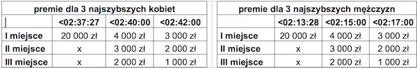 Główne nagrody rzeczowe do rozlosowania wśród tych zawodników, którzy dobiegną do mety: samochód osobowy Opel Adam, 20 tabletów