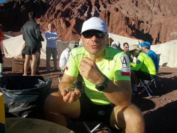 W mojej ocenie Atakama była najtrudniejszą z naszych trzech pustyń. Myślę, że podobnie oceniali ją inni zawodnicy. Świadczy też o tym liczba osób, które zrezygnowały lub zostały zdjęte z trasy. Biegu nie ukończyło 36 zawodników. Dla mnie był to w ogóle najtrudniejszy bieg, w jakim brałem udział. Kryzys pojawił się w czasie najdłuższego etapu. Był tak poważny, że widziałem przed sobą punkt kontrolny, który znajdował się jakiś kilometr ode mnie i nie miałem siły, żeby do niego dobiec. Nie mogłem nawet tam dojść. Usiadłem w cieniu skarpy i przez dobre 5 minut szukałem motywacji i czegoś, co mnie przekonana, żeby pokonać ten kilometr.