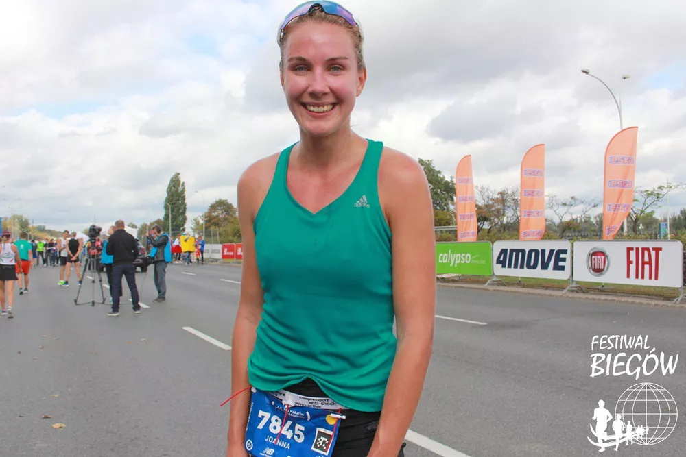 – Dwa miesiące temu podjęłam decyzję, że wystartuję. Najpierw był Półmaraton Praski, a później przygotowania do maratonu – opowiadała na mecie Pani Joanna, która była „nieco zdziwiona” tak dobrym wynikiem. – Wydolność mam z wioślarstwa. Chodziło tylko o to czy wytrenuję nogi i czy pobiegnę tak długi dystans... Wszyscy mi mówili o różnych kryzysach. Trochę to sobie wmówiłam i gdy byłam na 35. kilometrze to czekałam na ścianę… O dziwo większych problemów nie było – mówiła zaskoczona biegaczka.