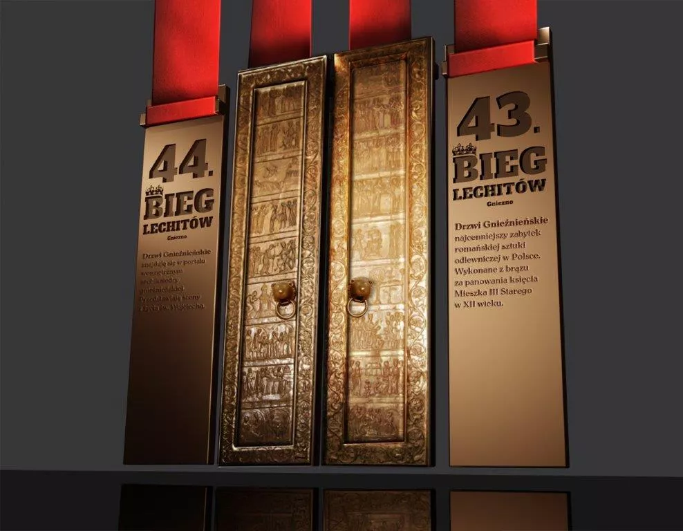 Od dłuższego czasu pracujemy nad bardzo ciekawym projektem medalu na dwie najbliższe edycje Biegu Lechitów. Kontynuując wątki historyczne, które towarzyszą Biegowi Lechitów, po otrzymaniu zgody Archidiecezji Gnieźnieńskiej na wykorzystanie wizerunku Drzwi Gnieźnieńskich, zaplanowaliśmy, że dla każdego uczestnika dwóch najbliższych edycji biegu medale, które stworzą miniaturę tych Drzwi.