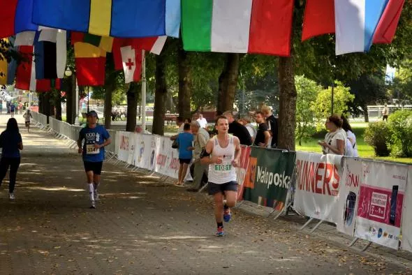 Na starcie wydaje się być niewiele osób, w porównaniu z Życiową dychą – garstka. Czuję lekki niepokój. Mówią o IronRunach, którzy też startują - myślę: "no ładnie będę na szarym końcu biegu". Ale co tam, odwrotu już nie ma. Startujemy o 17. Z deptaka trasa prowadzi w stronę Tylicza. Zaczyna się długi podbieg. Sic! Wydaje się nie mieć końca, modlę się by skończył się wcześniej niż w centrum Tylicza. Na punkcie z wodą - krzyczą: Teraz to już tylko z górki! Jak powiedzieli tak było. Zbieg był cudny. Nogi same przebierały. Mogłam lecieć szybciej, ale myśl, że trzeba będzie wracać tą samą trasą i ponownie się wspinać hamował moje zapędy.