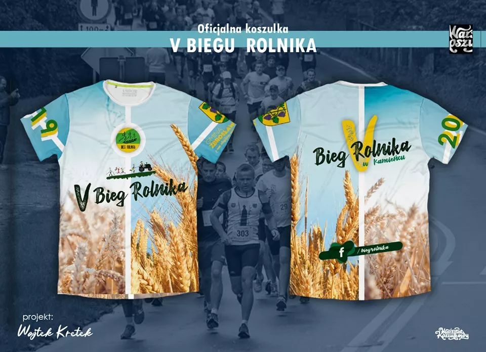 Dla wszystkich, którzy lubią koszulki biegowe, przygotowaliśmy wysokiej jakości techniczną koszulkę. Trykot wyprodukuje "Warsztat Koszulkowy" z Zabrza. Koszulka w tym roku ma motyw żniwny, dużo w niej symboli rolniczych, jest bardzo kolorowa i na pewno wyróżni się w tłumie podczas zawodów.