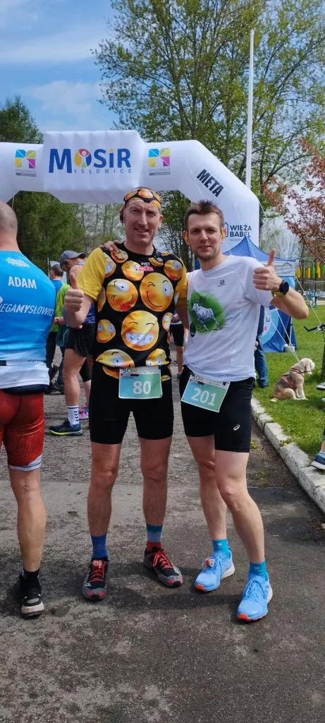 Biuro zawodów umiejscowione tuż przy linii startu sprawnie wydawało nr startowe. Skoro miejscowa impreza to wiadomo na starcie można spotkać wiele znajomych twarzy. Razem z Mateuszem udaliśmy się na krótką rozgrzewkę a następnie na linię startu.