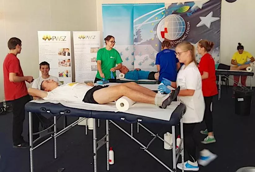Trzydziestu studentów i studentek PWSZ w Nowym Sączu na tegorocznym Festiwalu Biegowym zabezpieczało strefę odnowy biologicznej. To dzięki nim wycieńczeni uczestnicy najbardziej wyczerpujących biegów szybciej odzyskiwali siły.