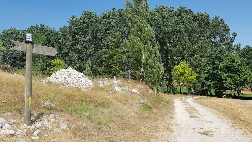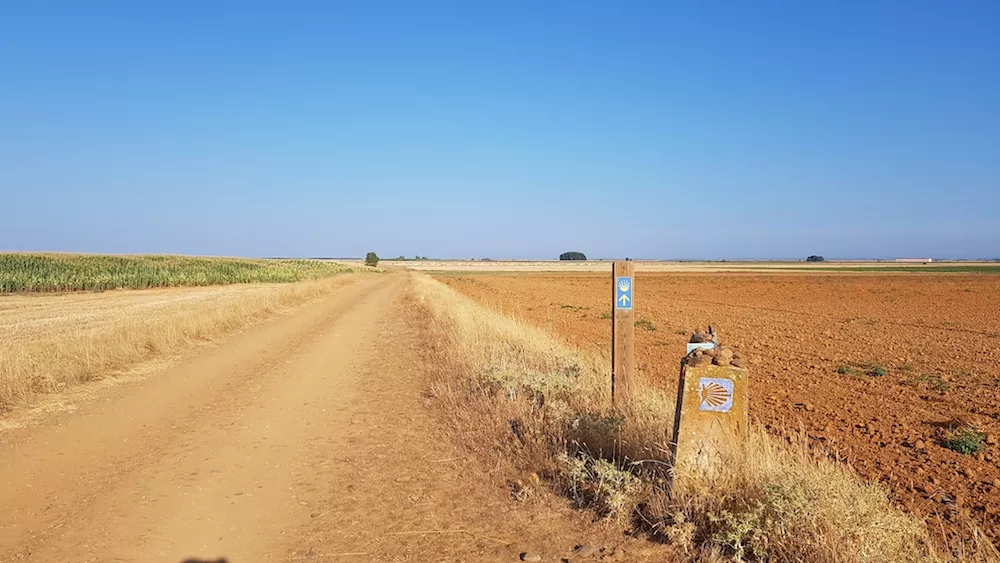 Od czwartego dnia trasa zaczęła prowadzić głównie przez polne drogi. A to oznaczało brak cienia i mocno już odczuwalny upał, do 36 stopni w słońcu. Wielu pielgrzymów pomija cześć trasy od Frómista do Leon i nic dziwnego. Tu nic się nie dzieje. Słychać tylko brzęczenie owadów, od czasu do czasu napotyka się pracujących w polu rolników na traktorach, i odczuwa się skwar. Po drodze wiosek z fontannami znacznie mniej. Monotonia jest ciężka dla głowy, ale nie wolno się poddawać. Do przodu, byle do przodu.