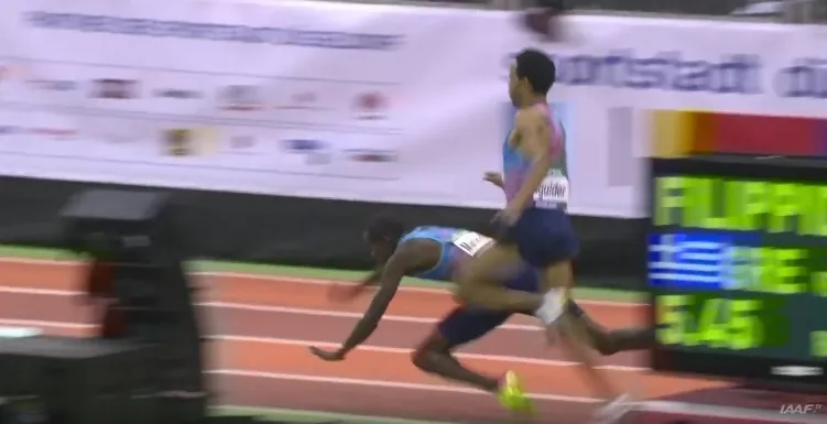 Dramatyczne sceny oglądaliśmy w biegu mężczyzn na tym dystansie. Zaciętą walkę o zwycięstwo toczyli mistrz świata Elijah Manangoi z Kenii i Marokańczyk Abdelaatti Iguider. W połowie przedostatniego okrążenia ten pierwszy, chyba z „pomocą” rywala, wyciągnął się na bieżni jak długi, powodując przy okazji... upadek Marokańczyka. Pech liderów wykorzystał Kenijczyk Vincent Kibet. Wygrał z wynikiem 3:36,86.