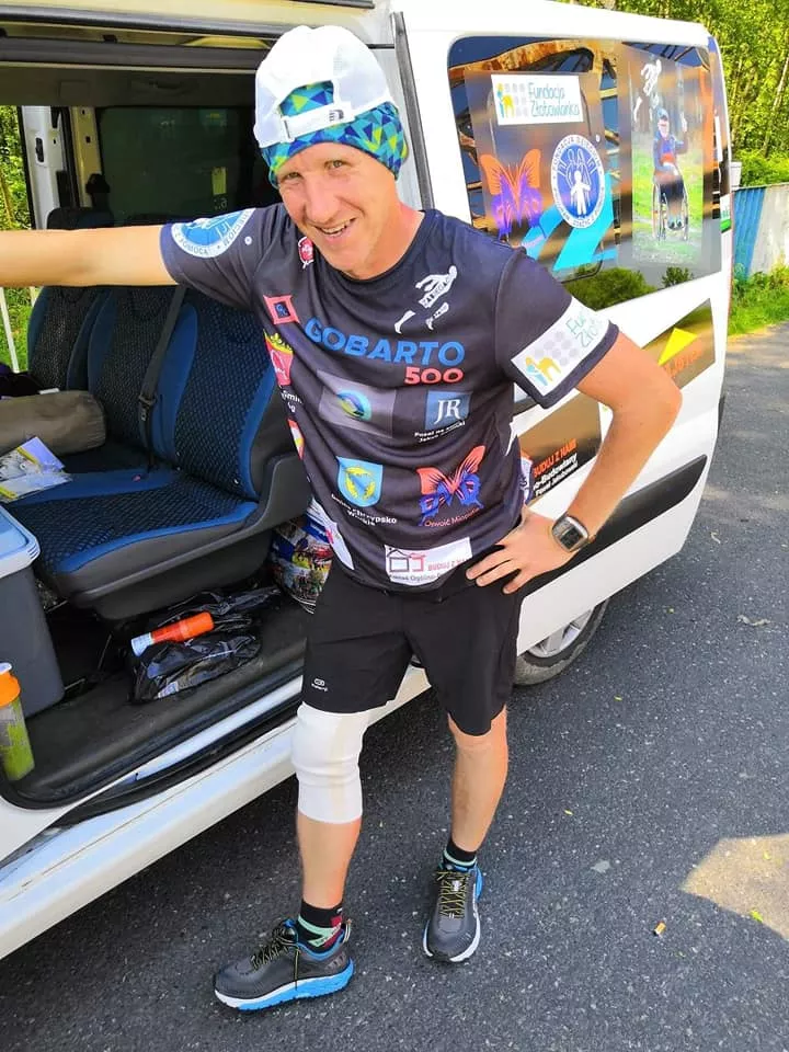 Do tego wyzwania przygotowywał się wiele miesięcy. Codziennie pokonuje bowiem po ok. 100 km. Dziś rozpoczął już szósty dzień w biegu, meldując się w Pile.