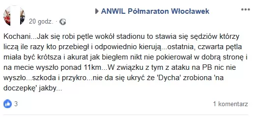 Jubileuszowa połówka we Włocławku obfitowała w dobre czasy i rekordy życiowe. Niestety radość z ich uzyskania nie trwała długo. Okazało się, że trasa - nie tylko biegu głównego - była za krótka. Co się stało, że zabrakło 700 m? - pytają na portalach społecznościowych uczestnicy.