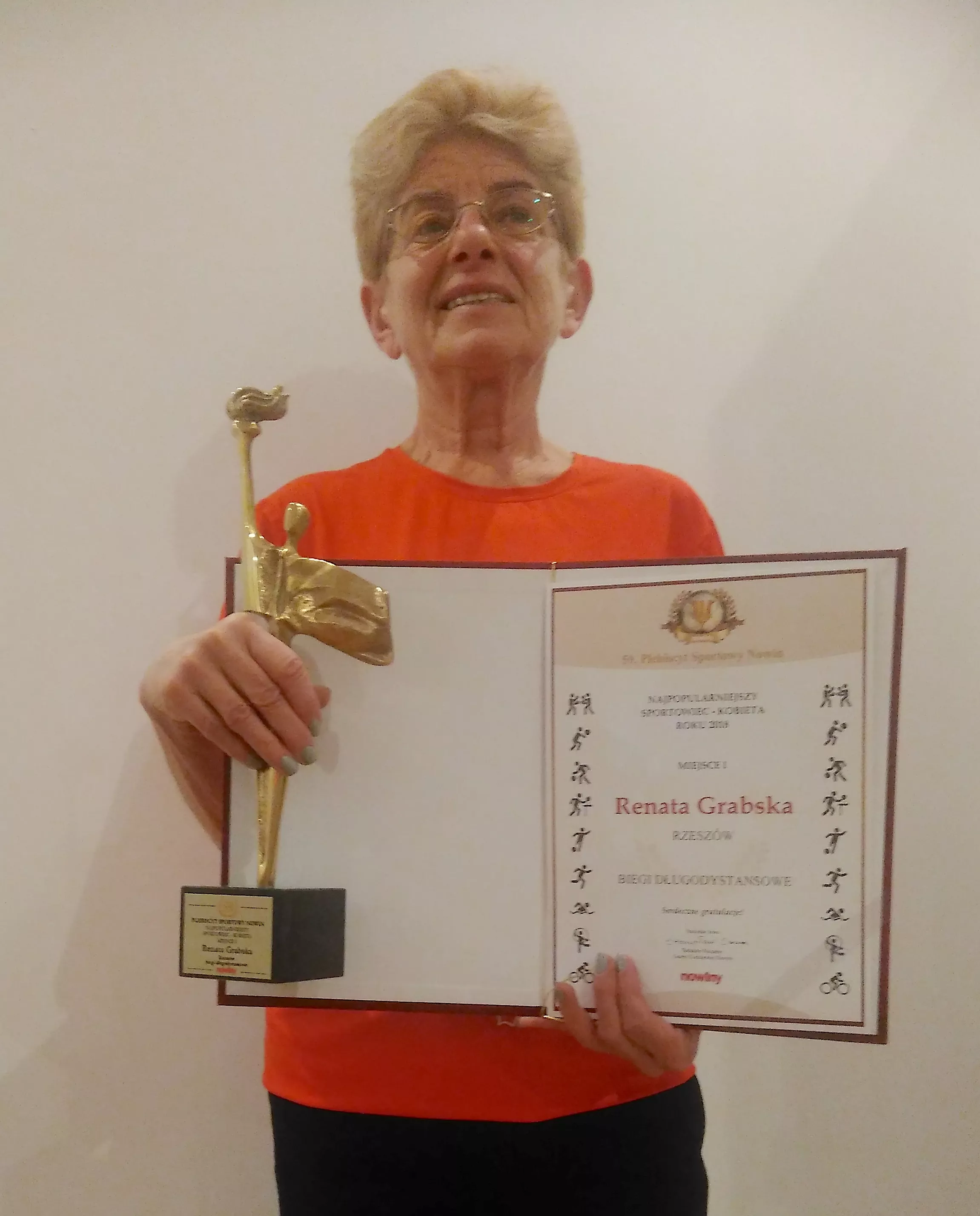 Renata Grabska biega już 33. sezon! Na swoim koncie ma już 581 imprez biegowych. Biegała maratony w w Berlinie, Paryżu, Wiedniu, Biel / Bienne (Szwajcaria), a także ultramaratony. Jest wielokrotną Mistrzynią Polski Weteranów w maratonie oraz na innych dystansach w swojej kategorii wiekowej. Jest aktualną Mistrzynią Polski Weteranów w Biegu Ulicznym na 10 km w kategorii K65-69.