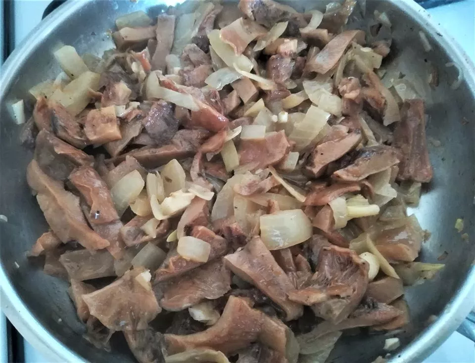 Przygotować je jest bardzo prosto. Oczywiście najlepsze są świeże, ale mrożone zachowują swoje cenne właściwości. Rydze po rozmrożeniu (przed zamrożeniem były pokrojone i blanszowane) kładziemy na patelnie, dodajemy masło i powoli smażymy na niewielkim ogniu. Mieszamy cały czas, a gdy wytwarza się sosik, dodajemy posiekaną cebulę. Ja posiekałem dwie nieduże. W międzyczasie możemy skosztować czy już nadają się do spożycia.