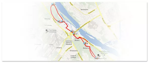 To jest ulubiona trasa pani Iriny. Kiedyś biegała na tej trasie samotnie, od 10 lat w każda sobotę o 8:00 rano grupa biegaczy zbiera się pod szlabanem (róg ulicy Podleśnej i Klaudyny) i wyrusza na Młociny. Najpierw trasa prowadzi przez Las Bielański, później wiaduktem nad Wisłostradą i tunelem pod trasą z Tarchomina na Bielany i dociera na Młociny.