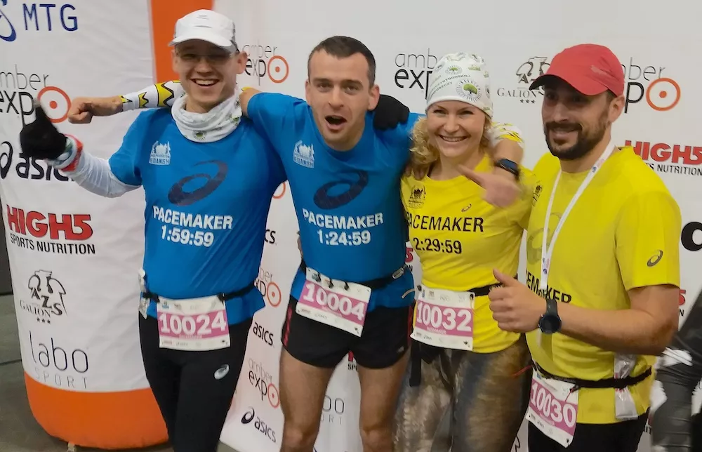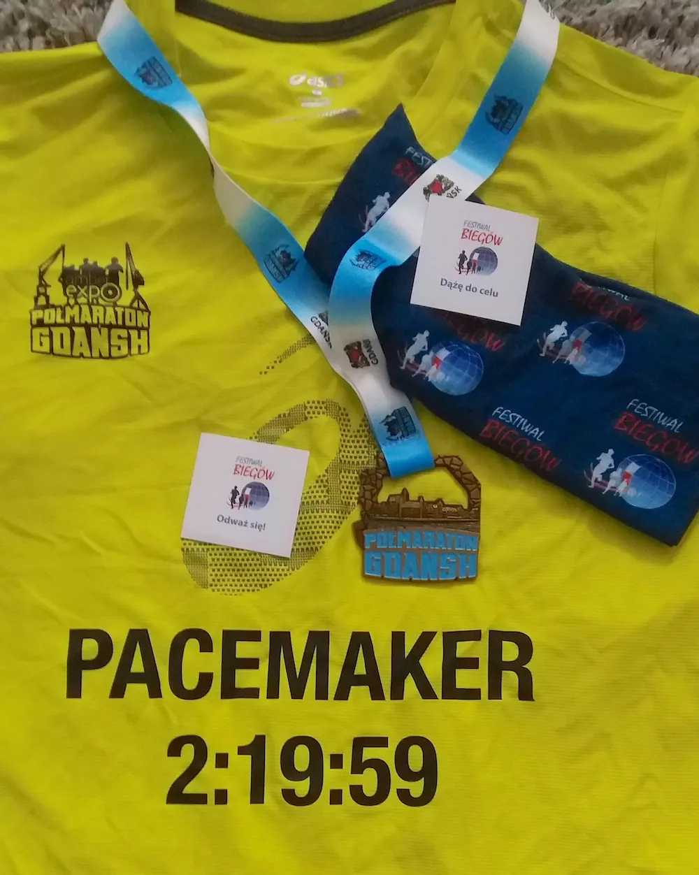 Punkt 9:00 wyruszyliśmy zwiedzać Gdańsk w tempie konwersacyjnym. Tego dnia wystąpiłem bowiem w roli pacemakera. Grupa miała być doprowadzona do mety w dość wolnym czasie - 2:19:59. Był to już ósmy mój start w roli zająca na dystansie półmaratonu w tym roku.