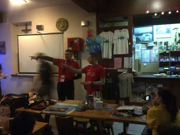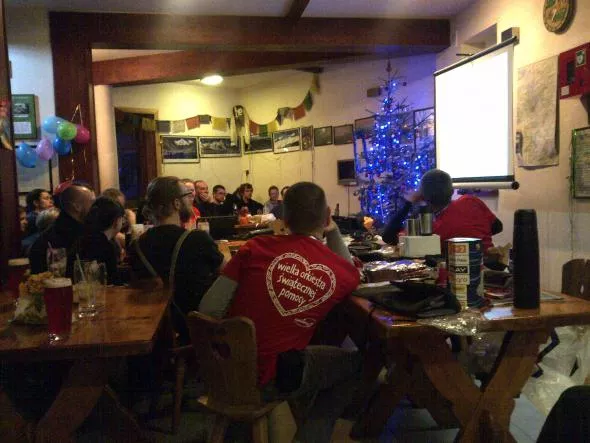 Wolontariusz WOŚP nigdy nie zbiera pieniędzy sam, dlatego nie jestem w stanie odpowiedzieć na pierwsze pytanie. Natomiast pierwsza puszka przy mojej pomocy zapełniła się, i co ważne bardziej szeleszcząc niż pobrzękując już w sobotę. Bo tradycją Karpackich Finałów WOŚP jest to, że w sobotnie wieczory, poprzedzające niedzielny Finał, w schroniskach organizowane są po pierwsze wydarzenia takie jak slajdowiska czy koncerty (na Markowych Szczawinach mieliśmy pokaz zdjęć Barbary Krauze pt. „Napal się na Nepal”) oraz po drugie aukcje przedmiotów ofiarowanych przez sponsorów komercyjnych (firmy m.in. Polarsport, viking, Compass – długą listę można znaleźć na http://www.orkiestra.e-beskidy.com/) i osoby prywatne. Wolontariusze mogą brać udział w tych aukcjach na zasadach identycznych, jak pozostali zainteresowani.