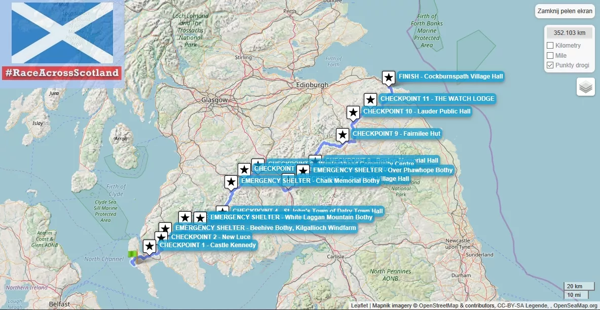 - Organizatorzy wychodzą z założenia, że zawodnicy mają być samowystarczalni a punkty kontrolne są jedynie drobnym wsparciem. Uczestnicy muszą biec z obowiązkowym wyposażeniem takim jak wiatrówka, zapas racji żywieniowych i wody, folia termiczna czy dodatkowa bluza. Klimat Szkocji charakteryzuje się częstymi opadami i wietrzną pogodą, to właśnie te czynniki oraz podmokły w wielu miejscach teren, przyczyniły się w zeszłorocznej edycji do rezygnacji wielu uczestników z dalszego biegu - pisze Artur Kujawiński w komunikacie prasowym rozesłanym do mediów.