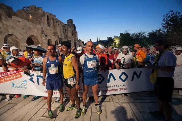 Pierwszy Polak wziął udział w Spartathlonie w 1995 r. Edward Dudek ukończył bieg na 6. pozycji. Najlepszy z Polaków był Piotr Kuryło, który w 2007 r zajął tu drugie miejsce z czasem 24:29:41. Piotr dotarł z Polski na miejsce startu pieszo, więc dodatkowe 250 km po prostu nie zrobiło na nim wrażenia. Przegrał wtedy tylko ze Scottem Jurkiem, który zwyciężał w Sparthatlonie dwukrotnie. W piątek swoich sił na tej trudnej, częściowo górskiej trasie, spróbuje 11 Polaków, w tym jedna kobieta, Edyta Szczygielska. Będzie to jej drugie podejście do Spartathlonu. Rok temu nie ukończyła zawodów. Po raz kolejny pobiegną również Paweł Kotlarz i Zbigniew Malinowski. Dla tego ostatniego będzie to już dziesiąty udział w imprezie. W 2012 r. był jedynym Polakiem na mecie.