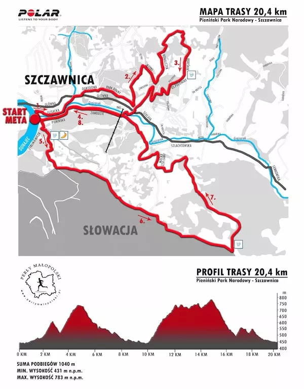 Start i metę umieszczono chyba w najbardziej malowniczym miejscu Szczawnicy skąd rozciąga się widok na Pieniny i końcowy etap spływu przełomem Dunajca. Tym razem główna atrakcja Pienin, spływ ze Sromowców Wyżnych do Szczawnicy lub Krościenka, nie cieszył się zbyt dużym zainteresowaniem. Pogoda, mimo iż idealna do biegania, na pewno nie zachęcała niewprawionych turystów do takich atrakcji.