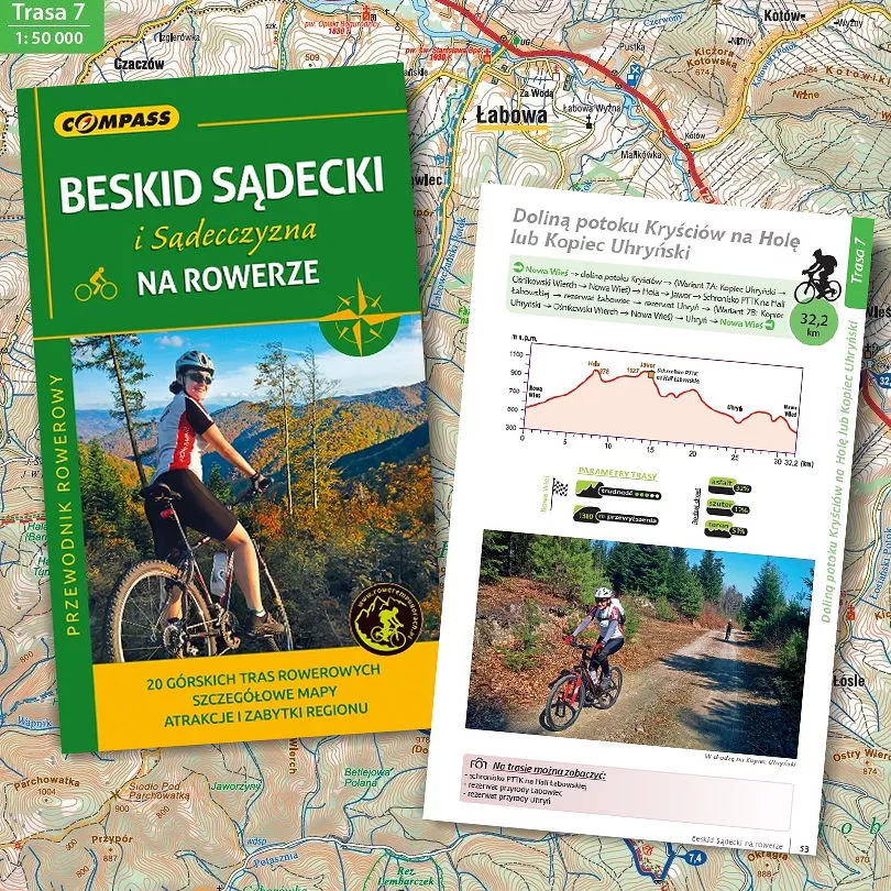Najciekawsze trasy (MTB), z mapami i szerokimi opisami zabytków czy ciekawych miejsc, do których dotrzemy, stworzyły zaś unikalny przewodnik rowerowy pt. „Beskid Sądecki na rowerze”, wydany w 2017 r. przez wydawnictwo Compass. Większość tras to „klasyki górskich wypraw rowerowych: Jaworzyna, Przehyba, Radziejowa, Runek...” - jak wyjaśniają twórcy przewodnika, który zawiera szczegółowe mapy i profile tras, z precyzyjnym opisem technicznym ułatwiającym poruszanie się trasami oraz danymi dot. długości, przewyższenia czy skali trudności. Strony przewodnika tworzą także opisy najciekawszych miejsc, atrakcji i zabytków oraz atrakcyjne zdjęcia z tras. Przewodnik dostępny jest w salonach Empik, dobrych księgarniach internetowych czy sklepach rowerowych Beskidu Sądeckiego.