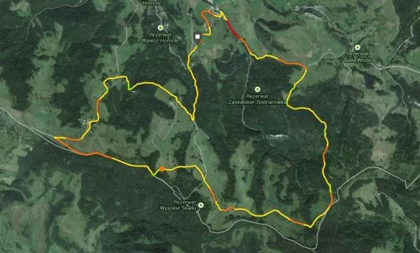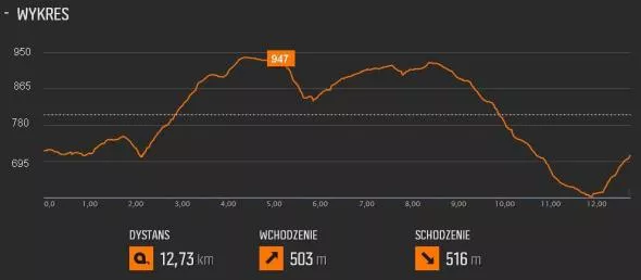 Przed dotarciem na szczyt, po krótkim odcinku w dół, trasa skręca w lewo na polne widokowa i prowadzi dalej przez las, aż do drogi gruntowej biegnącej poniżej Rezerwatu Wysokie Skałki. Teren na tym odcinku jest lekko pofalowany. Po drodze w połowie trasy kolejny bufet z napojami. Pod szczytem "Watrisko" trasa skręca w lewo na drogę leśną i prowadzi cały czas w dół, aż do przełęczy po Bereśnikiem. Tu trasa skręca ponownie w lewo i prowadzi po rozleglej polanie widokowej, droga gruntowa aż do dolnej stacji kolei linowej, a następnie wytyczona trasa po stoku pnie się do góry aż do linii mety. Ostatni podbieg ma ok. 900 metrów długości i prawie 120 metrów różnicy poziomów.