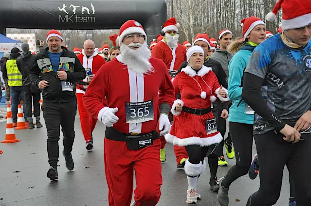 Niemal 1700 zawodników wzięło udział w szóstej edycji Biegu Mikołajkowego w Dolinie Trzech Stawów w Katowicach. Do wyboru były trzy konkurencje a uczestnicy każdej z nich mieli wystartować w czerwonej mikołajkowej czapce, która znalazła się w pakiecie. Niektórzy pokusili się o kompletne przebrania, założyli swetry ze świątecznymi motywami a nawet… piżamy w bałwanki i renifery. Choć zima ewidentnie odpuściła, bo temperatura wzrosła do 10 stopni, było bardzo zimowo i świątecznie.