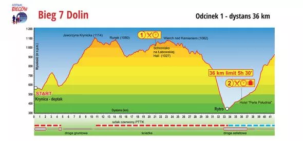 Na filmie znajdziecie pierwszy, 36 km, odcinek trasy od startu w Krynicy-Zdrój do Hotelu „Perła Południa", który jest metą dla tego dystansu oraz przepakiem dla pozostałych dystansów.