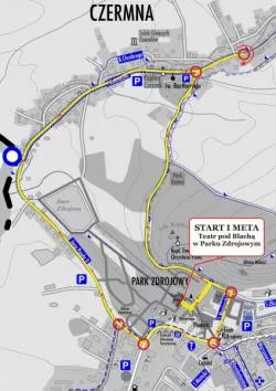 Największym atutem imprezy jest trasa, składająca się z czterech pętli po 3,75 km każda (łączny dystans biegu głównego to 15 km). Okrążenie rozpoczyna się i kończy w Parku Zdrojowym przy Teatrze pod Blachą. Sama trasa wiedzie głównymi ulicami wokół Parku, następnie do miejscowości Czermna i Kaplicy Czaszek, gdzie następuje nawrót.