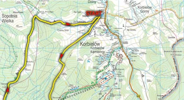 Wytyczona przez organizatora ścieżka zawodów ma niewiele wspólnego z rozgrywanym tu w lipcu Biegu na Pilsko (część wspólna to ledwie kilkaset metrów). Prowadzi wąską drogą asfaltową wzdłuż strumyka, pomiędzy drzewami oraz wymagającym żółtym szlakiem. Uczestnicy poprzednich edycji zawodów ostrzegają, że na płaskich i śliskich kamieniach, szczególnie podczas deszczu, którego w Korbielowie nie brakowało na przestrzeni ostatnich lat, łatwo stracić równowagę. W przypadku opadów biegu nie ułatwią też potoki wody płynące z góry szlakiem.