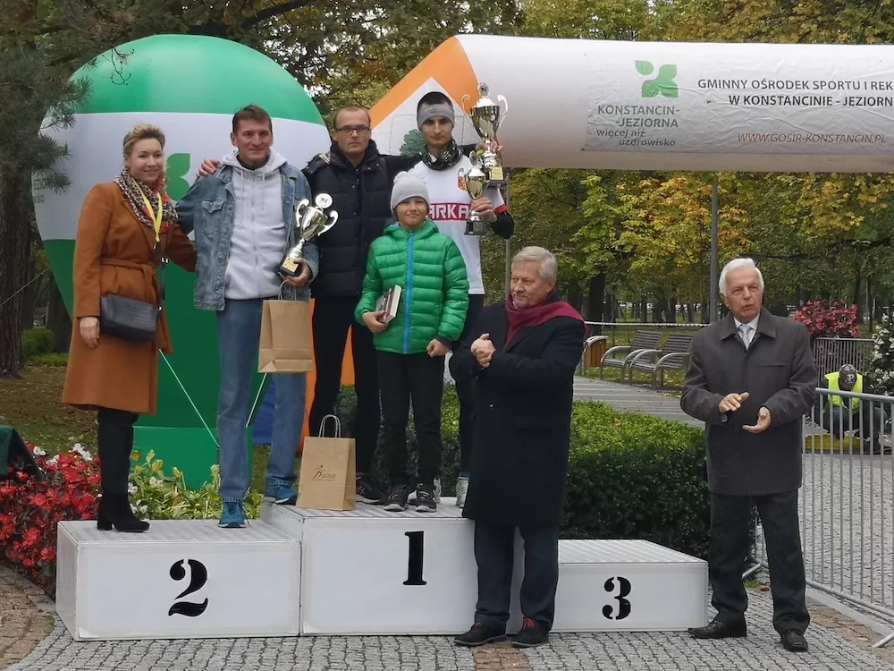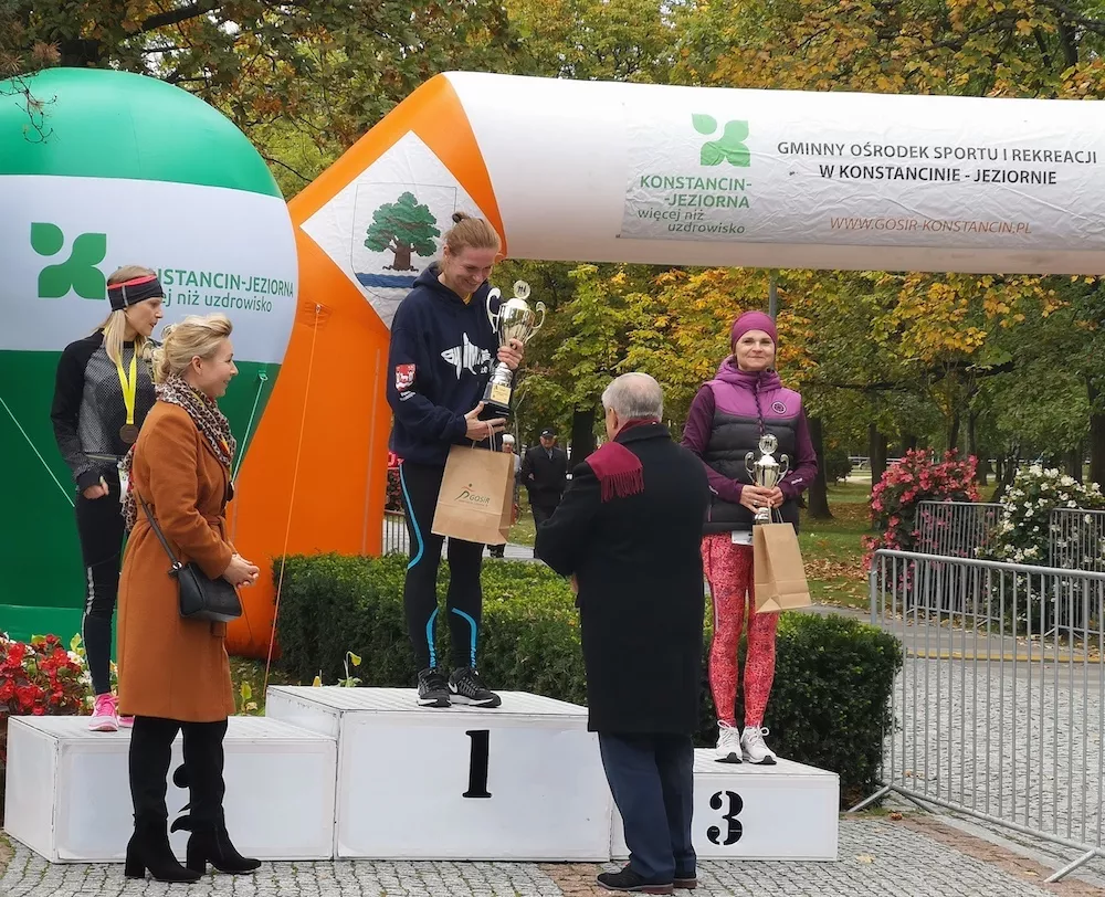 Bieg, dotychczas rozgrywany w Habdzinie, w tym roku został przeniesiony do Parku Zdrojowego, zaraz obok tężni w Konstancinie-Jeziornej. To najprawdopodobniej poskutkowało tym, że z dystansu 5 kilometrów uciekło kilkaset metrów, bo na mecie dystans na zegarku wynosił około 4,65 km. Szkoda, bo z tego co się orientuję, jest tam przecież organizowany parkrun, gdzie trasa jest wymierzona.