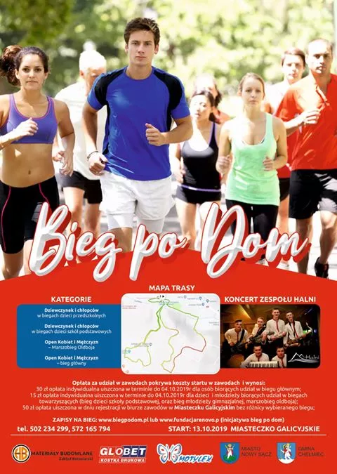 Bieg po Dom, organizowany przez Fundację Renovo i Stowarzyszenie Nawojowska Grupa Wsparcia ma na celu zbiórkę funduszy na dokończenie budowy domu dla Sylwii Kamili oraz Juli. Kamila oraz Julia mają rdzeniowy zanik mięśni i poruszają się na wózkach inwalidzkich. Start 13 października w Sądeckim Skansenie Parku Etnograficznego w Nowym Sączu.